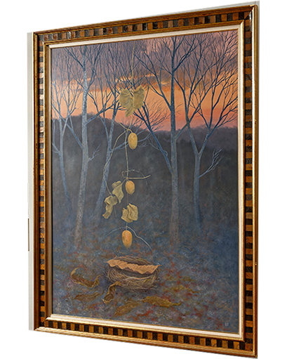 多摩美術大学卒業後、佐藤多持らが 1957 年に結成した美術グループ「知求会」に第 3 回展から参加し、以後中心メンバーとして、同会で発表を続けた。「具象という形態で、シュールの手法を借りて人間の業を描いてみたい」という作者の言葉通り、卓越した描写力でモチーフひとつひとつを写実的に描きながらも、その組み合わせはシュールレアリスム(超現実)的な非現実性を表し、結果的に見る者は幻想世界の中に取り込まれていく。