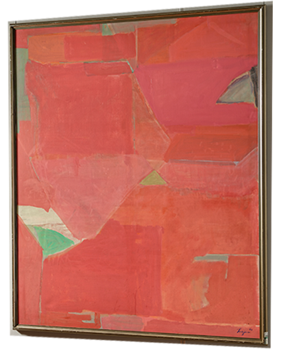 京都市に生まれた作者は、京都市美術展市長賞一席を受賞したのをはじめ、日展、光風会、独立展などで入選を果たした。1962 年に新起流美術協会を設立し、立川市に事務所を置いて運営につとめた。静物画や風景画から抽象画まで幅広くこなし、それらの作品に共通するのは、温かな色と色がほどけあうように調和した色彩感覚である。