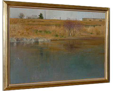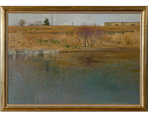 多摩地域を拠点として活躍する作家たちが会派を越えて参加する WILL 美術家会は、いまもたましん RISURU ホールにて毎年展覧会を開催している。人が入れ替わり、会場も変化する中で、事務局長を長年にわたって務める作者を中心に、同会が現在まで存続している意義は非常に大きい。多摩の風景、特に多摩川近辺を描き続ける作者は、心をとらえる景色と出会うために自らの足で川沿いを周遊し、一度その景色を見つければ、その場にイーゼルを構えて創作にとりかかる。いかに大作であっても、現地で描くことを大切にしているという。